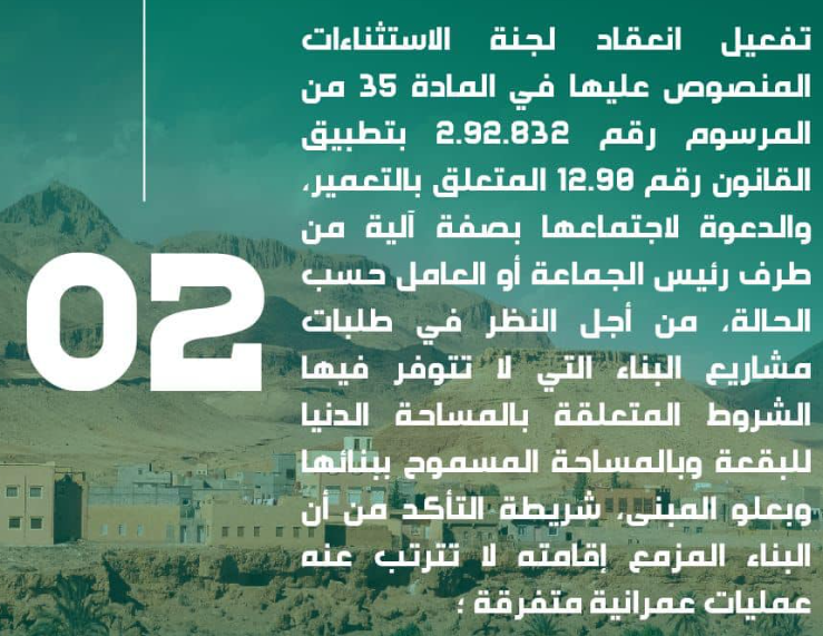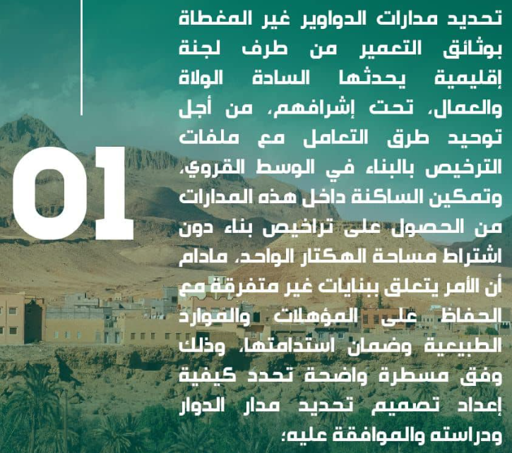 Une circulaire conjointe entre le Ministère de l’Aménagement du Territoire National, de l’Urbanisme, de l’Habitat et de la Politique de la Ville et le Ministère de l’Intérieur relative à la simplification de la procédure de la construction en milieu rural, publiée le 28 avril 2023, et adressée à Mesdames et Messieurs les Walis et les gouverneurs, les présidents des conseils des communes, les Directeurs des Agences Urbaines, ainsi qu’aux Inspecteurs Régionaux de l’Urbanisme, de l’Architecture et de l’Aménagement du Territoire, en vue de les inciter à prendre un ensemble de mesures visant la simplification des procédures de délivrance des autorisations concernant la construction en milieu rural.