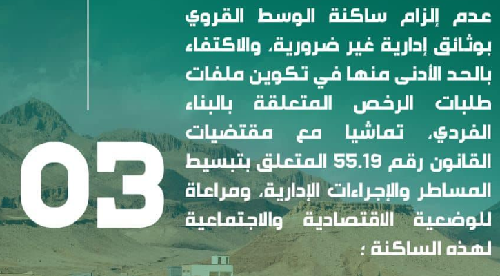 صدرت بتاريخ 28 أبريل 2023 دورية مشتركة بين وزارة إعداد التراب الوطني والتعمير والإسكان وسياسة المدينة، ووزارة الداخلية، بشأن تبسيط مسطرة الترخيص بالبناء في الوسط القروي، موجهة إلى السيدات والسادة الولاة والعمال ورؤساء مجالس الجماعات، ومديري الوكالات الحضرية والمفتشين الجهويين لإعداد التراب الوطني والتعمير والهندسة المعمارية، تدعوهم لاتخاذ مجموعة من الإجراءات التي من شأنها المساهمة في تبسيط مسطرة الترخيص بالبناء في الوسط القروي.