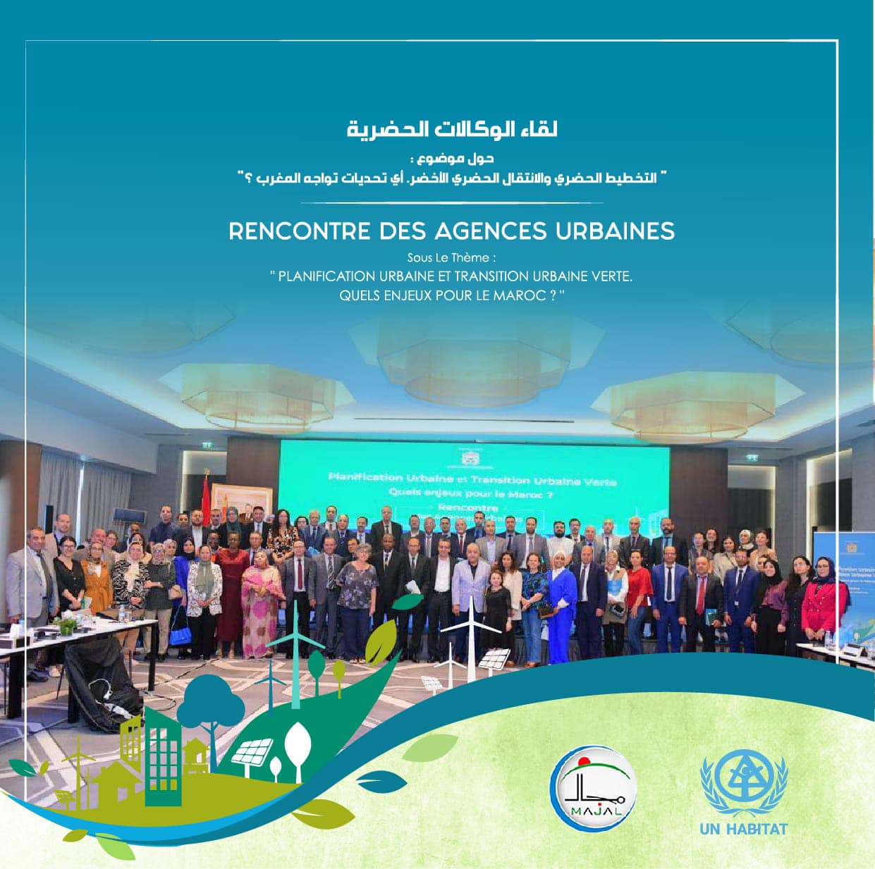 S’inscrivant dans la vision stratégique de Sa Majesté le Roi que Dieu l’Assiste visant à inscrire le développement durable dans toutes les politiques sectorielles, le Ministère de l’Aménagement du Territoire National, de l’Urbanisme, de l’Habitat et de la Politique de la Ville et la Fédération Majal ont organisé en partenariat avec ONU-Habitat Maroc, la 11ème rencontre des Agences urbaines sous le thème : ‘’Planification urbaine et transition urbaine verte. Quels enjeux pour le Maroc ? ’’ visant l’orientation de la planification urbaine pour la confection de documents d’urbanisme porteur de la durabilité.