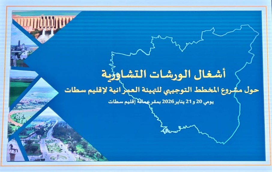 تحت رئاسة السيد عامل إقليم سطات، يحتضن مقر عمالة الإقليم يومي 20 و21 يناير 2026 الورشات التشاورية لدراسة مشروع المخطط التوجيهي للتهيئة العمرانية لإقليم سطات، والتي تعتبر استكمالا لوضع أسس المشروع ودراسة ركائزه وعرض مستجداته.